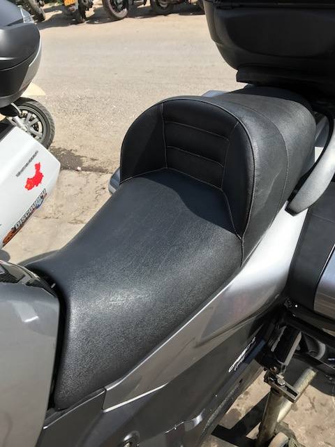 2. Сидение (4- из 5). После «электрички» любое иное сидение кажется менее комфортным. Особенно пассажиру. В случае TR-G оно, скажем так, «нормальное и вполне ничего». Мой пока самый длинный дневной пробег за раз составил 11 часов и никаких неприятных ощущений, по мнению пятой точки, не возникло. Но я всё же размышляю над тем, чтобы кастомизировать его немного, перешить под себя, так сказать. Я бы сделал его помягче посредством либо дополнительного наполнителя либо гелевых вставок. Но более радикально я бы подумал насчет пассажирской части. Думаю сделать ее изначально повыше (чтобы линия взгляда пассажирки был существенно выше шлема пилота), а также, наверное, изменил бы угол наклона сиденья, чтобы при торможении пассажирку меньше стаскивало вперед, и можно было более комфортно сидеть, обперевшись спиной на задний кофр. Что-то похожее я недавно увидел на одном из таких же мотоциклов на улице (см. фото).
