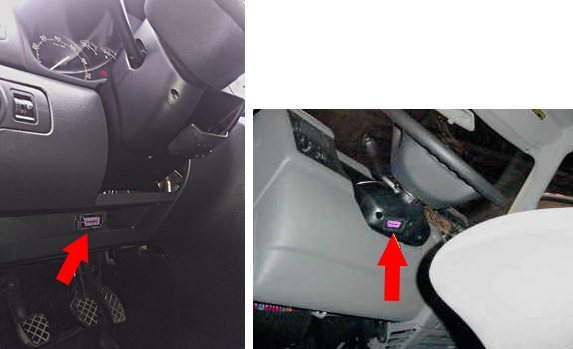 В соответствии со стандартом диагностический разъем должен располагаться недалеко от рулевой колонки, чаще всего внизу под торпедой левее, правее или непосредственно под рулевой колонкой. Однако встречаются и экзотические случаи: за панелью на передней стороне торпеды, за откидным ящичком возле водительской двери и т.д., всего возможных мест расположения 8, мы попытались проиллюстрировать картинками со стрелочками и подсказками где можно искать разъем.