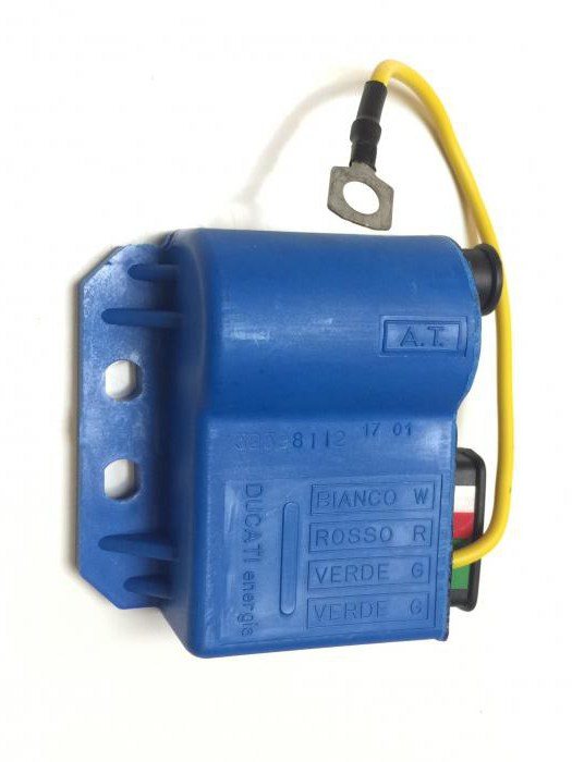 Весь механизм, установленный на двигателе, заставить функционировать на практике несколько сложнее. Двухкатушечная конструкция зажигания CDI — классическая схема, которая впервые была использована на мопедах «Бабетта». Одна из катушек — низковольтная — отвечает за управление тиристором, вторая, высоковольтная, является заряжающей. При помощи одного провода обе катушки подключаются на массу. Ко входу 1 подводится выход заряжающей катушки, ко входу 2 — выход датчика тиристора. Свечи зажигания подключаются к выходу 3.