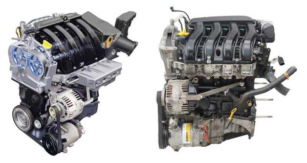 На Рено Логан устанавливают и 16 клапанные движки. С завода выходят авто укомплектованные силовыми агрегатами К4М. Этот тип двигателя является продолжением развития семейства К7. Основным конструктивным отличием является исполнение двигателя по схеме DOHC. Применяется два распредвала, установленных в измененной головке клапанов.