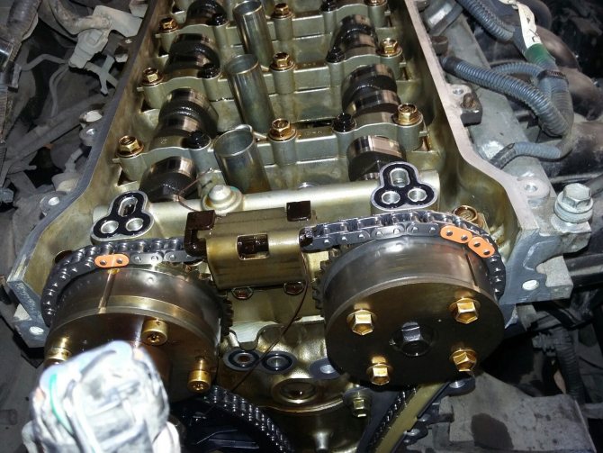 Механизм газораспределения 2ZR-FE. Привод осуществляется цепью