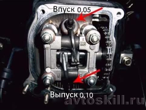 - На двигателях серий 139QMB (обычные китайские восьмидесятки) ставлю зазор 0,05 мм — как на впускной так и на выпускной клапан — одинаково.