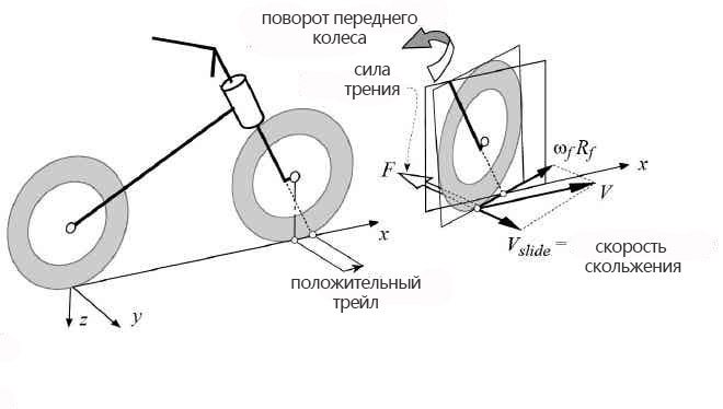 Для простоты понимания мы будем пользоваться понятием механического трейла, но для построения, например, математической модели мотоцикла этого будет недостаточно.