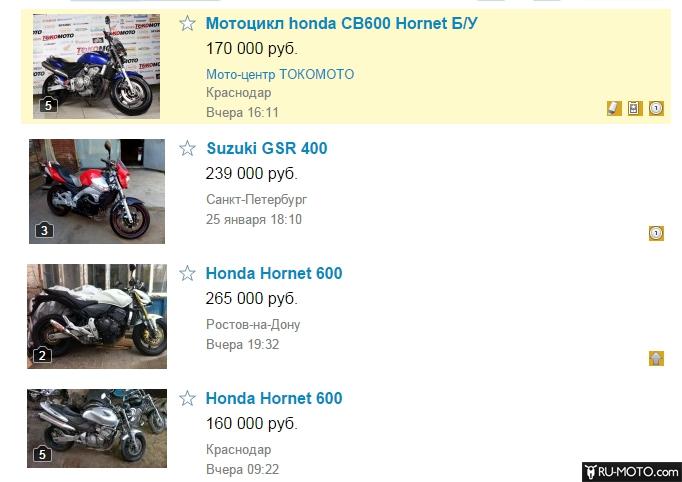 Цена на cb 600 (Хонда Хорнет) разных годов