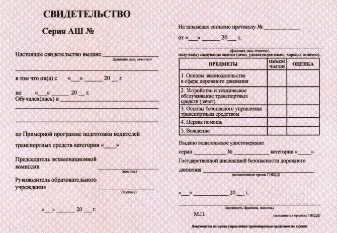 При окончании обучения в автошколе или на курсах слушателям выдаются документы, свидетельствующие о том, что пройдено обучение на определённую категорию водительских прав. Этот документ потребуется для допуска к экзаменам в ГИБДД. Но даже после успешного получения водительских прав его не следует выбрасывать. Если придётся восстанавливать водительское удостоверение или категорию по каким-либо причинам, потребуется документ, подтверждающий прохождение обучения. Кроме этого, нужны следующие документы: