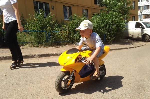 Возможно, вы видели на фото взрослых байкеров, которые ездят на подобном транспорте. Дело в том, что производители решили выпускать отдельную линейку специально для больших людей. Что касается детей, то купить детский мотоцикл на бензине следует в том случае, если вы уверены за безопасность вашего будущего гонщика. Перед покупкой мотоцикла обзаведитесь необходимой защитной амуницией (шлем, наколенники перчатки). Процесс обучения должен проходить на минимальных скоростях до 10 км/час. Популярность детских мотоциклов настолько выросла, что сегодня даже проводятся специальные соревнования.