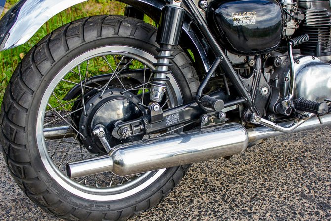 Стиль 60-х годов, кик-стартер, спицованные колеса, прямая посадка. Когда я его покупал, я уже мечтал о кафе-рейсерах, но еще не думал, что буду делать именно из W650. Однако, я его полюбил — на W800 например уже нет кика по причине инжекторности.
