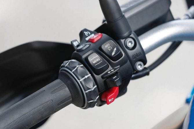 Мотик далеко не такой оборотень, как Мультистрада, но тоже очень старается. И режимы, числом четыре, далеко не декоративные, как например в XR, а отличный рабочий инструмент, которым постоянно пользуешься. Переключение нажатием кнопки на правом пульте, кнопка-то сама нормальная, но расположена на мой взгляд неудачно. Ее бы под большой палец, а она где-то сверху. Короче, надо привыкать, потому что щелканье этой кнопкой довольно частое.