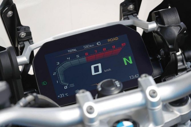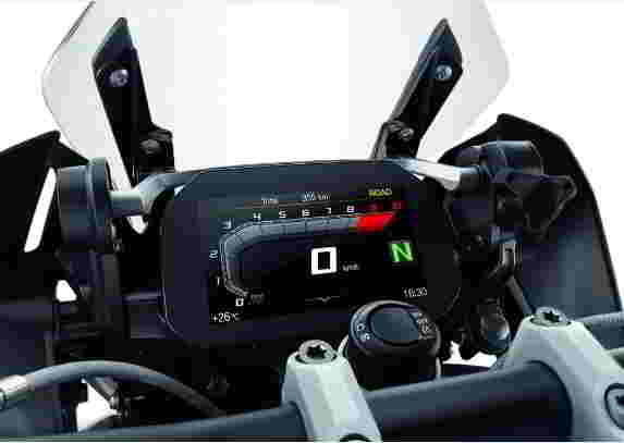 Приборная панель с 6,5-дюймовым TFT-дисплеем отображает не только скорость и обороты двигателя, но и контакты в вашем телефоне, список аудиотреков, подсказки навигации и разнообразную информацию о мотоцикле. Яркость дисплея настраивается автоматически – данные отлично считываются и под прямыми солнечными лучами, и в темную безлунную ночь.