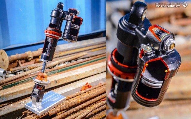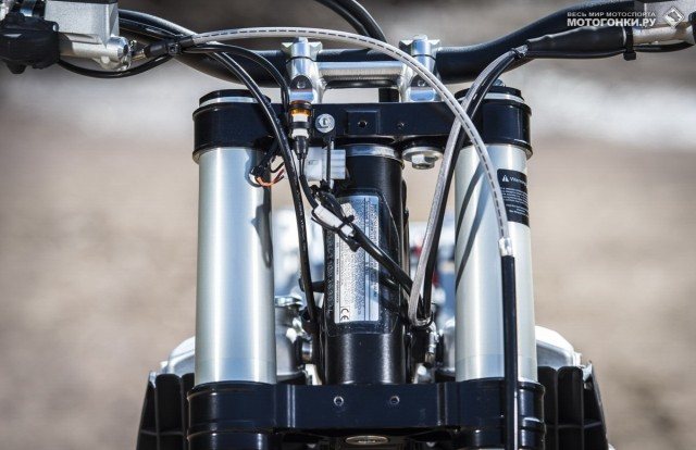 «Пружина» герметична и взаимодействует с масляным картриджем через нерегулируемый байпасс. Ход подвесок на всех моделях SX-F составляет 300 мм.