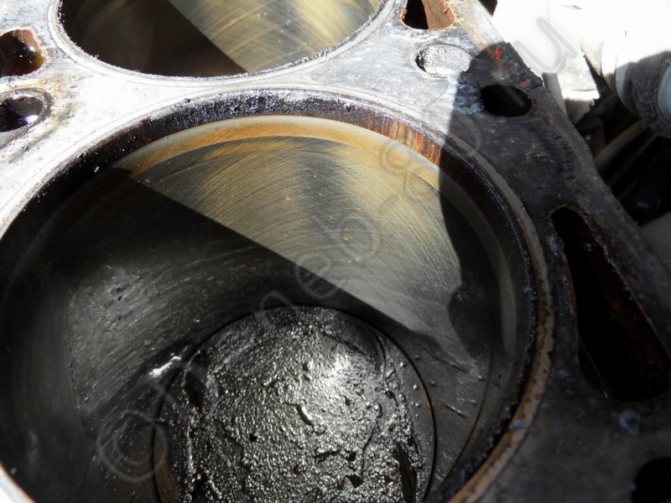 На следующем фото видно хонинговочную сетку на стенках цилиндра. О том, что такое хонингование, есть хорошая статья на сайте okeydrive.ru (хонингование).
