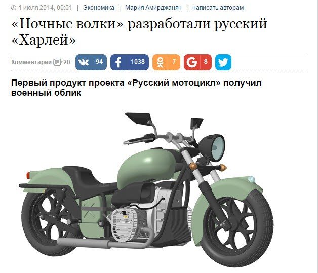 Валерий, о как. А какой? Вы еще скажите, что он итальянский ) Особенно учитывая, как дизайнерам выкручивали руки, чтобы стилистически выдержать мот именно таким — не итальянским, не американским, не японским. Или Вы думаете, они не пытались сделать по-своему? И если считать Барбакане автором мотоцикла (надо это Джованни рассказать, пусть поржет), то почему патентуем его мы? ) Вам не кажется, что этих вопросов, очень простых по сути, слишком много? Этот мотоцикл — русский. Чисто русский, по факту и процессу своего рождения. «И это есть медицинский факт» (с). Ну, а Вам остается только верить. Либо мне, знавшему как он делался, либо левым журналистам, всегда пишущим с чьих-то слов. Других вариантов у Вас просто нет ) Вы, разумеется, выберете вариант верить любой, самой разнузданной и бессовестной лжи, отечественной или иностранной — главное, чтобы она бросала тень на все отечественное. И чем гнуснее ложь и чернее тень, тем лучше — о да, детка. Я понимаю. Ведь мы, русские, все рукож.пые, ничего не умеем-не знаем, это ведь все знают, да? ) Вы молодцом ) Спора не будет. Читать этот вконтакт. И либо верить, либо нет. Слава богу, мы живем в свободной стране. Владислав Давыденко