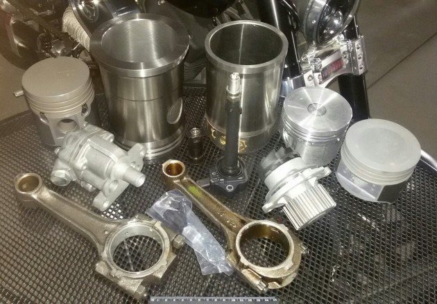 Первый комплект цилиндров прототипа, обработанный и готовый к установке. При машинной обработке обнаружились артефакты литья. Они некритичны, но выводы сделаны. Собираем клапанные механизмы и устанавливаем гильзы. Параллельно изготавливаются приводы ГРМ и маслонасоса, балансирные валы, промежуточный вал стартера. Проект «Русский мотоцикл», 31 июля 2015