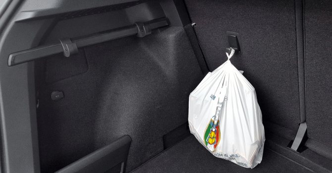 Пакет можно повесить за крючок с тыльной стороны спинки заднего дивана. А эластичные сетки, которые есть в каталоге аксессуаров, наверняка пригодятся в процессе сортировки и фиксации груза. Как видно, полезных приспособлений тут хоть отбавляй.