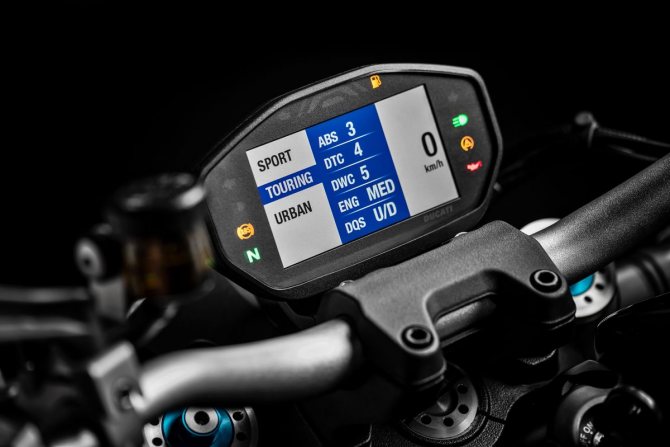 Приборная панель с ЖК-индикатором Monster 1200 может быть индивидуализирована, а мотоциклист может выбрать режим индикации для любого режима езды.