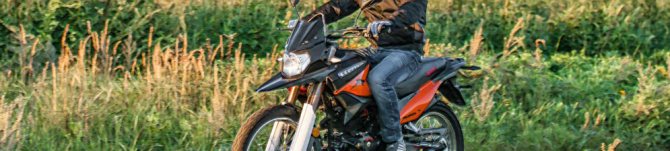 - Подвеска транспортного средства достаточно жесткая и немного «табуреточная», поэтому путешествия на дальние расстояния предпочтительнее отложить до лучших времен. На этом мотоцикле очень непросто проехать даже 100 километров. Спереди подвеска представлена масляно-пружинной вилкой-перевертышем, тогда как сзади установлен гидравлический амортизатор. В условиях оффроада или на коротких дистанциях потенциал байка раскрывается в полной мере – высокий клиренс и универсальная резина способствуют преодолению любых дорожных неурядиц. Небольшой вес агрегата позволяет катить его без затруднений, что играет немаловажную роль в экстремальных условиях эксплуатации.