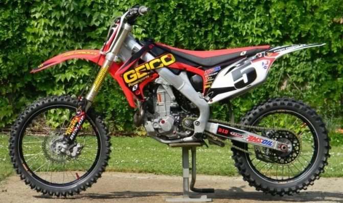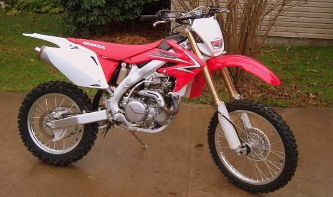 - Honda CRF450R — кроссовый вариант. Отсутствуют зеркала, фары, минимум электрики.