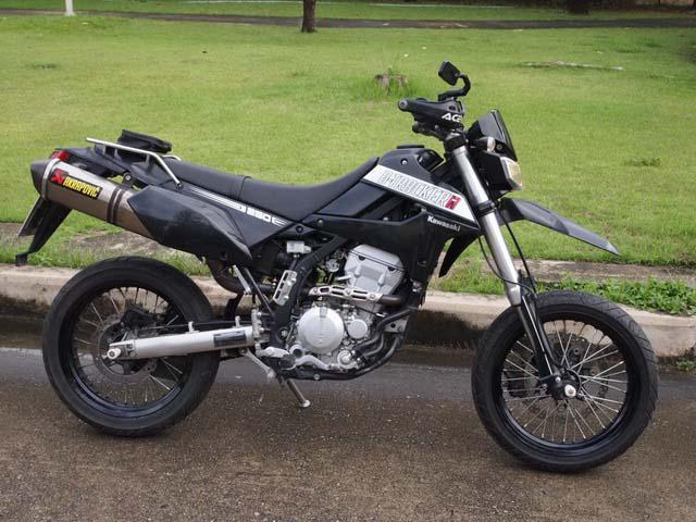 Отзывы владельцев о Kawasaki D-Tracker 250 также подтверждают, что у байка хорошая проходимость: он легко едет по бездорожью. А если переставить стандартные колеса на широкие кроссовые, мотард вполне сможет преодолевать труднопроходимую местность.