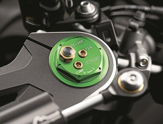 Слегка улучшенная подвеска Kayaba и меньшая на 22 кг масса улучшают управляемость. kawasaki h2r