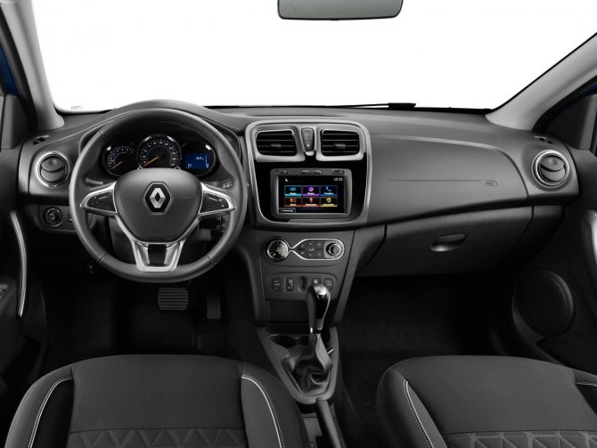 Салон новинки перекочевал от уже известного нам Renault Logan. Модель обладает таким же приборным щитком, который смотрится более презентабельно, стильно и функционально. Если говорить проще – он приятный для восприятия. Интересно, что на шкалах французской машины конструкторы по непонятным причинам поместили рыжую крапинку, которой недовольны водители. Хорошо, что ее заметно лишь днем, так как подсветку она с обратной стороны не получила.