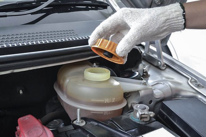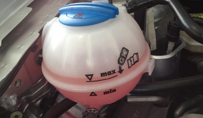 - Далее автомобиль заводится на 5-10 мин, глушится и проверяется уровень антифриза в бачке.