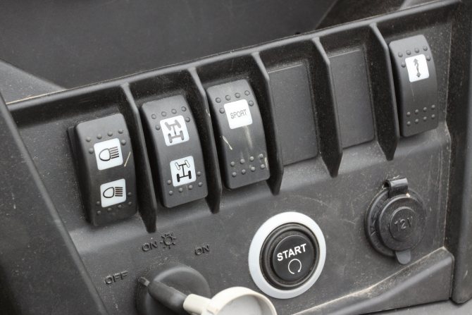 Благодаря посадке «Side-by-side», а также сидениям с боковой поддержкой и 3-точечными ремнями безопасности «рассекать» на внедорожнике могут даже очень габаритные люди.