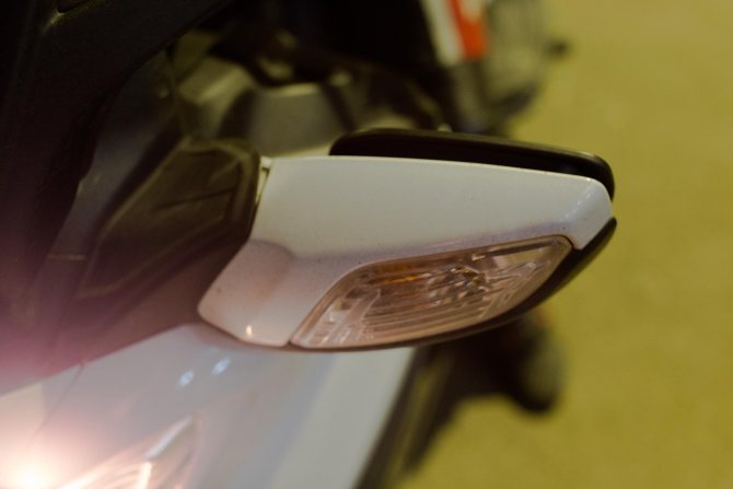 Так как осенью темнеет рано, а светает поздно, большинство времени ездил в темноте. И не могу ничего плохого сказать про про свет, скорее наоборот, 2 лампы прилично освещают дорогу. Задние поворотники хорошо видны и читаемы, передние только при разложенном положении зеркал.