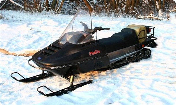 В результате одноименный снегоход стал более приспособленным для российских условий, и стал дешевле в обслуживании. Машина хорошо адаптирована к условиям окружающей среды с температурными диапазонами плюс 10 – минус 40 градусов. Силовая установка расположена спереди, а для улучшения курсовой устойчивости установлена широкая и длинная гусеница. К тому же, хорошей проходимости и устойчивости способствует скользящая рельсовая подвеска с усиленными амортизаторами. Следующий элемент ходовой части – две опорно-поворотные лыжи и гусеничный движитель, которые обеспечивают плавность движения по неровной дороге, а также на больших скоростях. С таким внедорожным шасси можно, не опасаясь, ездить по рыхлым и глубоким снежным сугробам. Силовая установка достаточно мощная и экономичная, чтобы быстр разгоняться и при этом не беспокоиться за перерасход топлива. Благодаря этому не возникает проблем, связанных с преодолением больших дистанций.