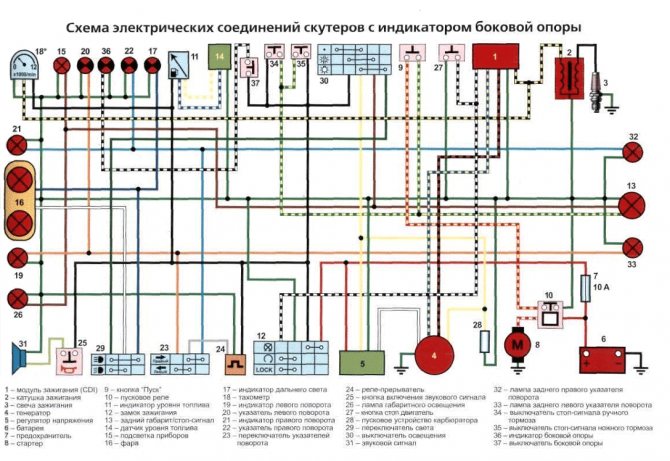 Принципиальная электрическая схема китайских скутеров изображена на рисунке: