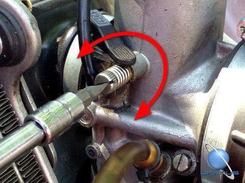 Это можно сделать с помощью регулировочного винта или путем перемещения иглы в дроссель. На фото выше показано расположение винта