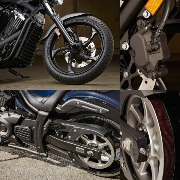 Если с «Вулканом» всё просто, и для него выбраны традиционные размеры резины, принятые ещё в середине ХХ века и использующиеся до сих пор, то «Ямахе» с задним колесом удалось выбиться из тренда. 170/70–16 – размер не то, чтобы уникальный, но редкий. Я сходу могу вспомнить только два мотоцикла с таким задним колесом. Вторым, кстати, будет Kawasaki. Понятно, что для редкого метрического круизера специально резину делать мало кто будет, тем не менее, и Metzeler Marathon, и Dunlop K555, и Shinko 777 найти именно в штатном размере можно.